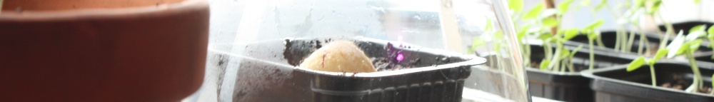 Nu är kärnan till två tredjedelar nersatt i vattnad såjord i en kruka, ställd på fat, och täckts med en uppochnervänd vas. Så kan man nämligen också lösa problemet med obefintliga odlingsklockor och minidrivhus.