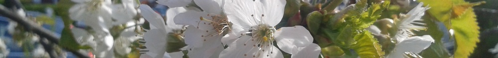 Goda körsbärsträdet blommar. Och lössen börjar komma. Och är det inte löss så är det fåglar. Det är tur man kan köpa goda körsbär på Hemköp också.