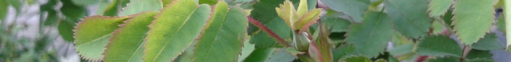 Rosbuskarna har knoppar. Jag drar en suck av lättnad. Den här gången har jag bara gallrat, inte beskurit, nu på vårkanten. Jag lyssnade på nåt sånt där mummel om att när björken har musöron ska rosorna beskäras, men det gäller tydligen inte nyponrosor av det här slaget. Eller om det är nån sorts bergsros. Har ingen aning. Men beskäras på våren ska de inte, i varje fall inte om man vill att de ska blomma.